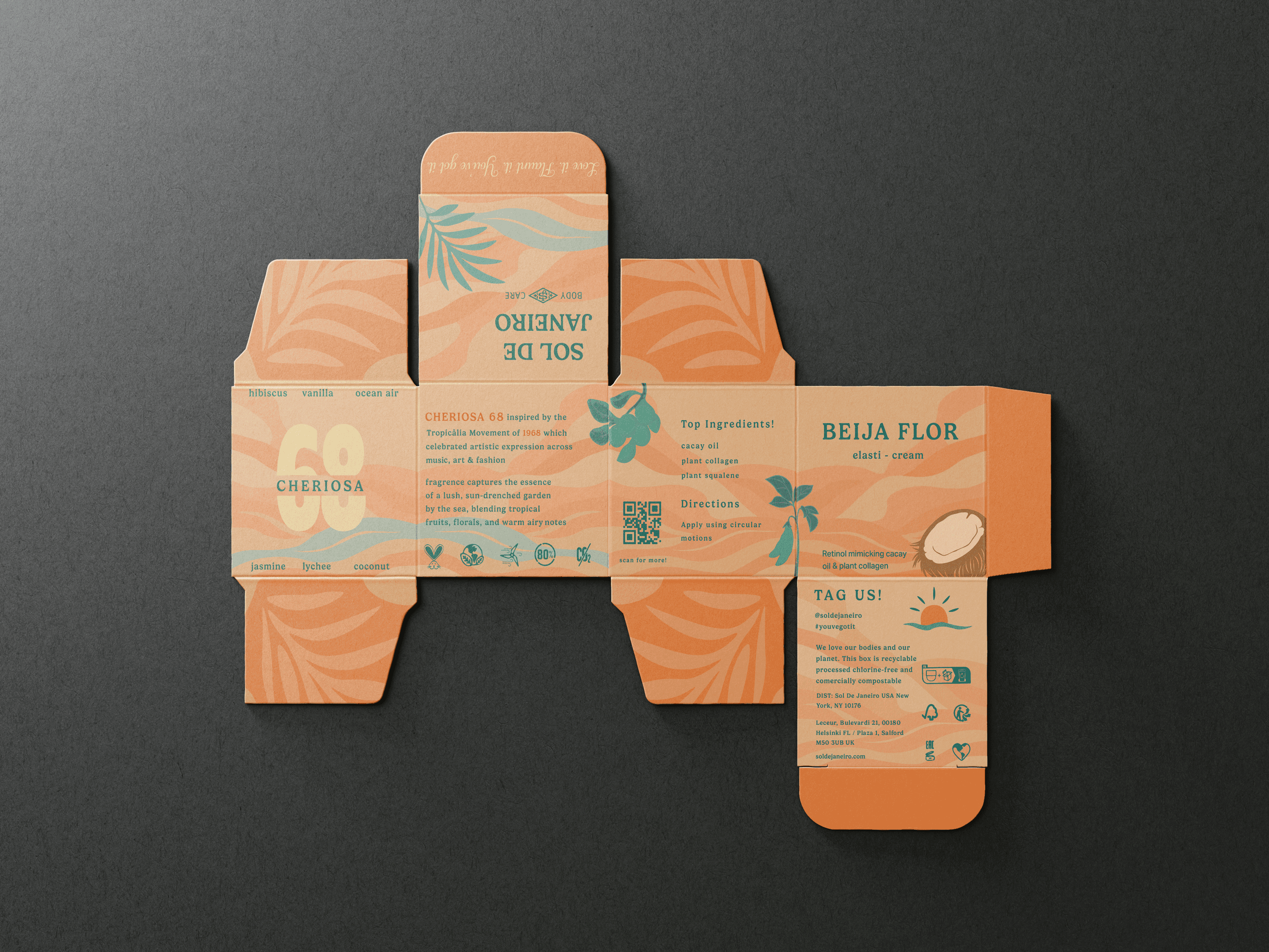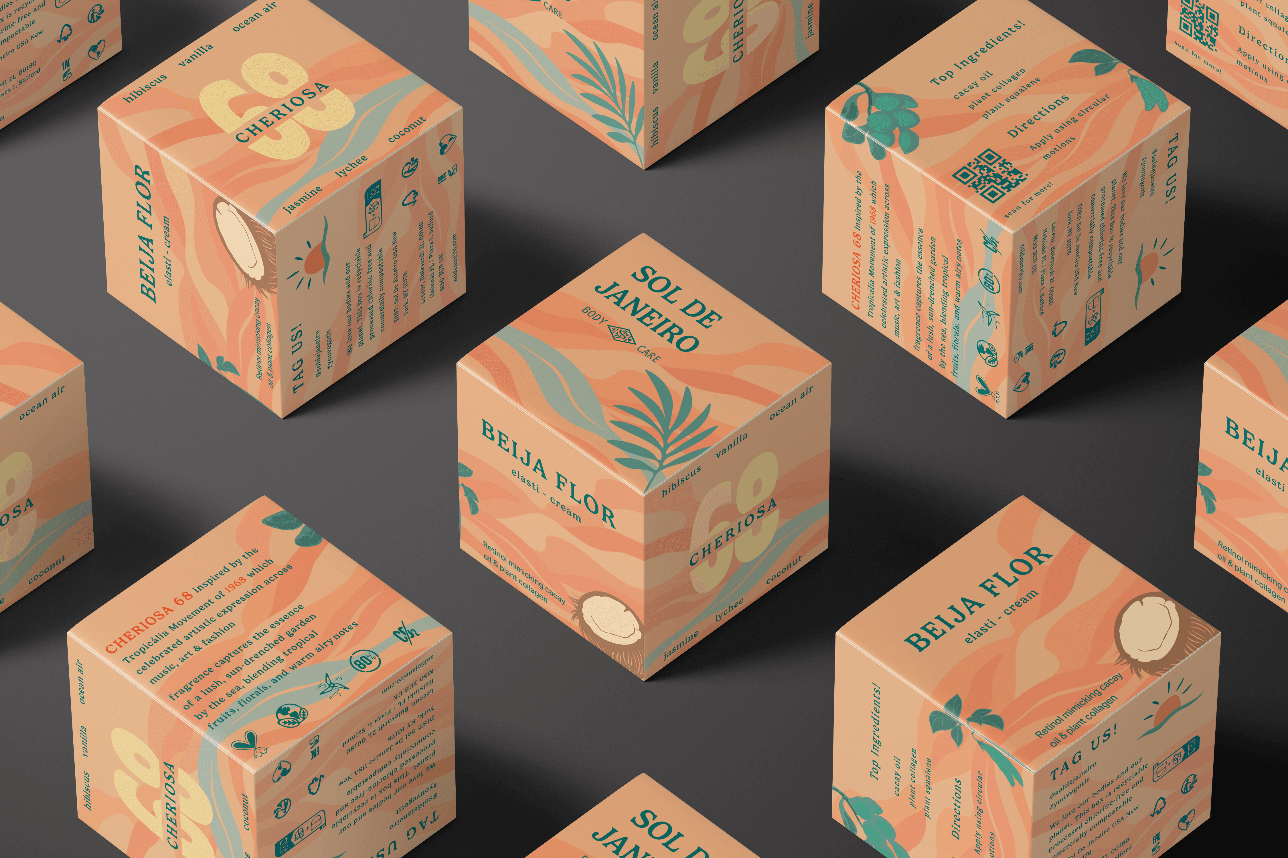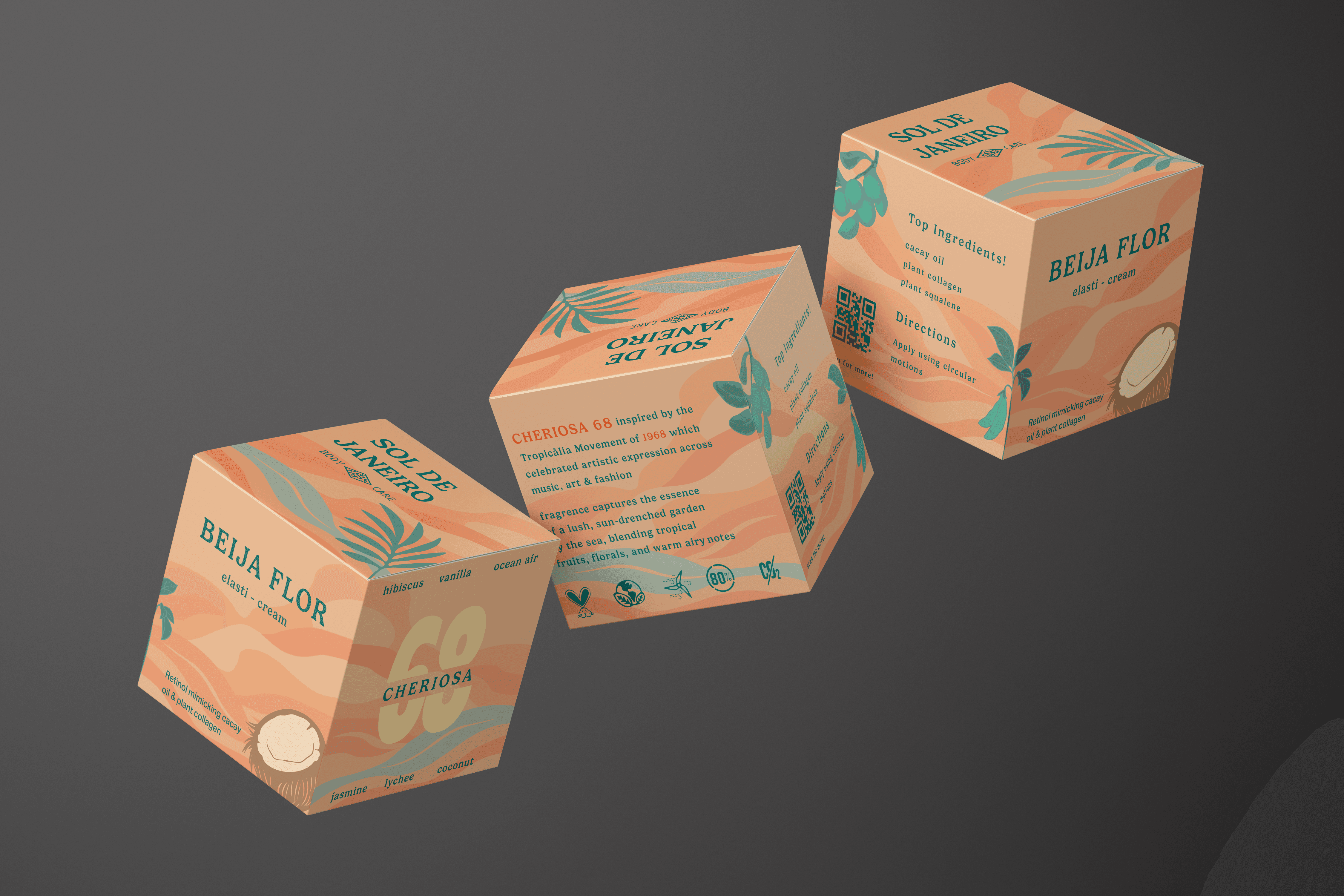 For this self-initiated concept redesign of Beija Flor, I reimagined the packaging through my own design lens, exploring how the brand’s signature warmth and vibrancy could feel more refined and cohesive. This independent project was created for creative exploration and is not affiliated with or commissioned by Sol de Janeiro.Inspired by sun-soaked Brazilian landscapes, the redesigned system features flowing organic forms, layered coral and peach tones, and rich teal typography to create depth and contrast across every panel. Botanical illustrations and ingredient highlights are thoughtfully integrated to strengthen storytelling and enhance shelf presence.The result is a vibrant yet elevated packaging concept that balances playful energy with a more modern, design forward approach.