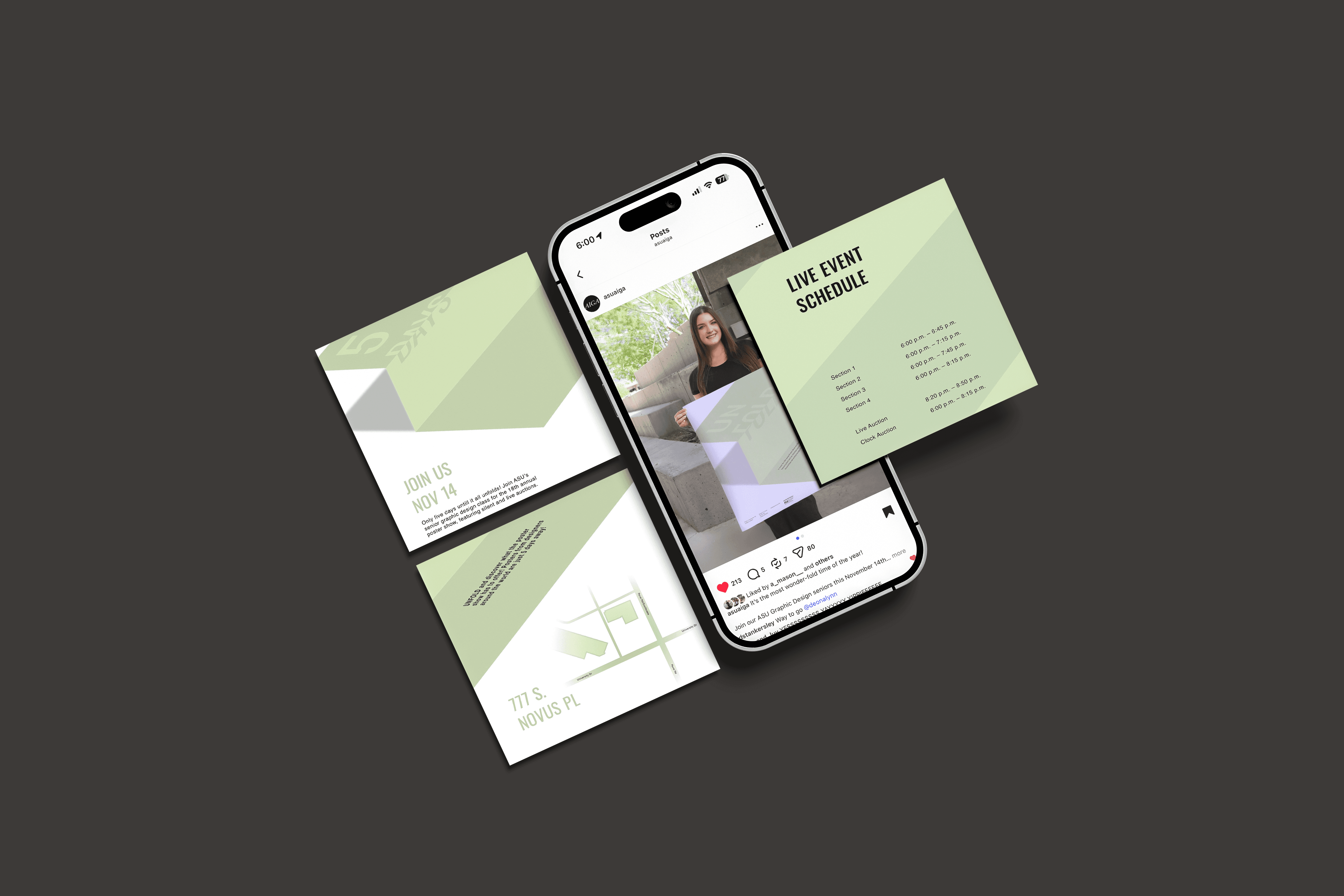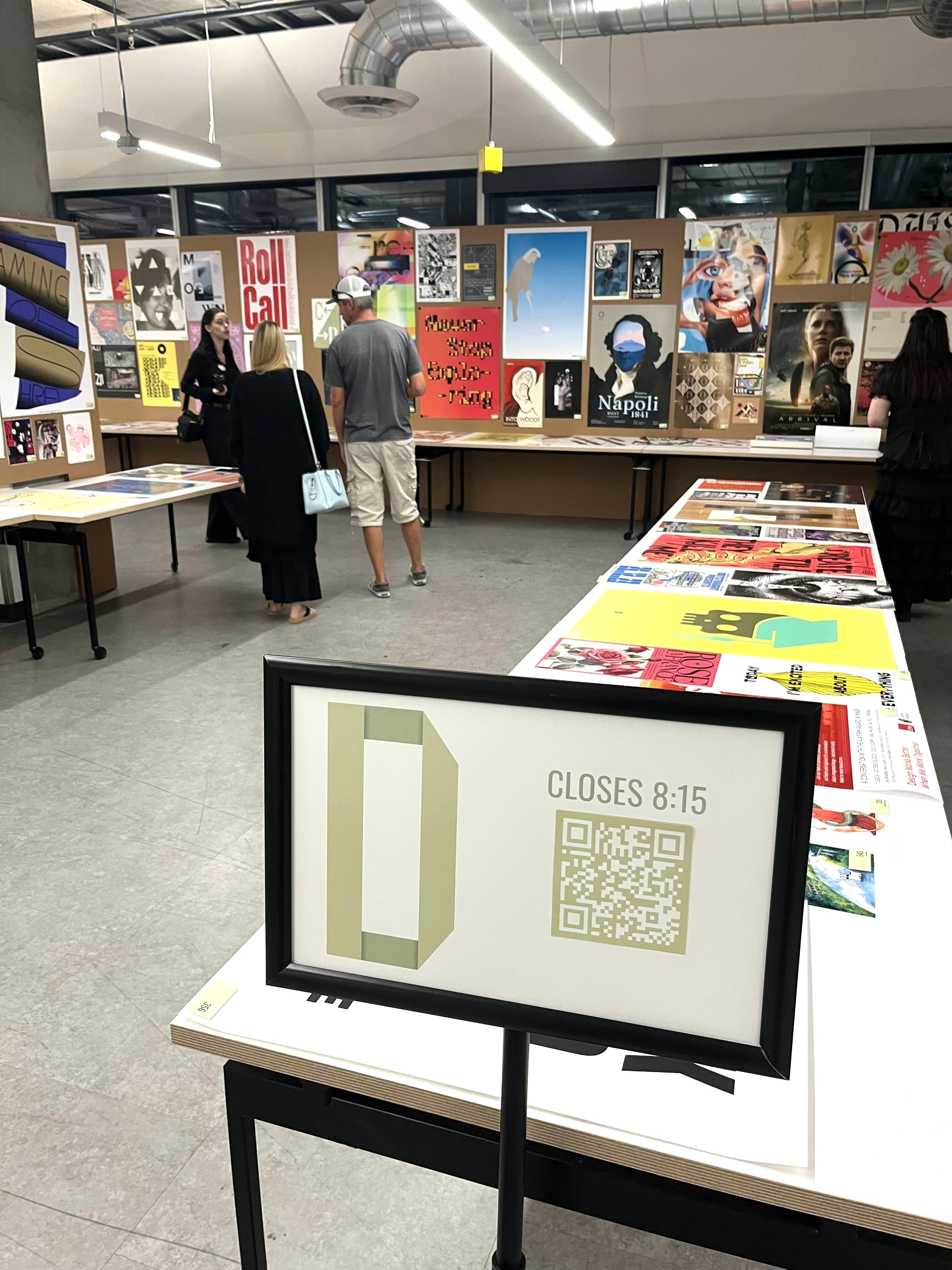 In a class of 63 senior graphic design students, each of us developed a poster concept for the 2025 Poster Show & Auction. Through a series of peer voting rounds, my design was selected as the winning concept, establishing the official theme and visual direction for the entire event.The Poster Show & Auction is a large scale, student led event featuring donated works from designers around the world. The event serves as a fundraiser supporting the senior spring exhibition, bringing together community, industry professionals, and emerging designers in one collective celebration of design. Being selected meant the entire event identity from promotional collateral to environmental design evolved from my original concept.